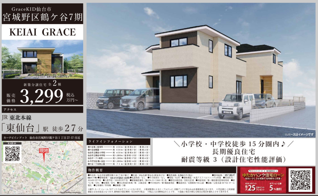 【鶴ヶ谷】新築一戸建て 4LDK 2号棟 3,299万円